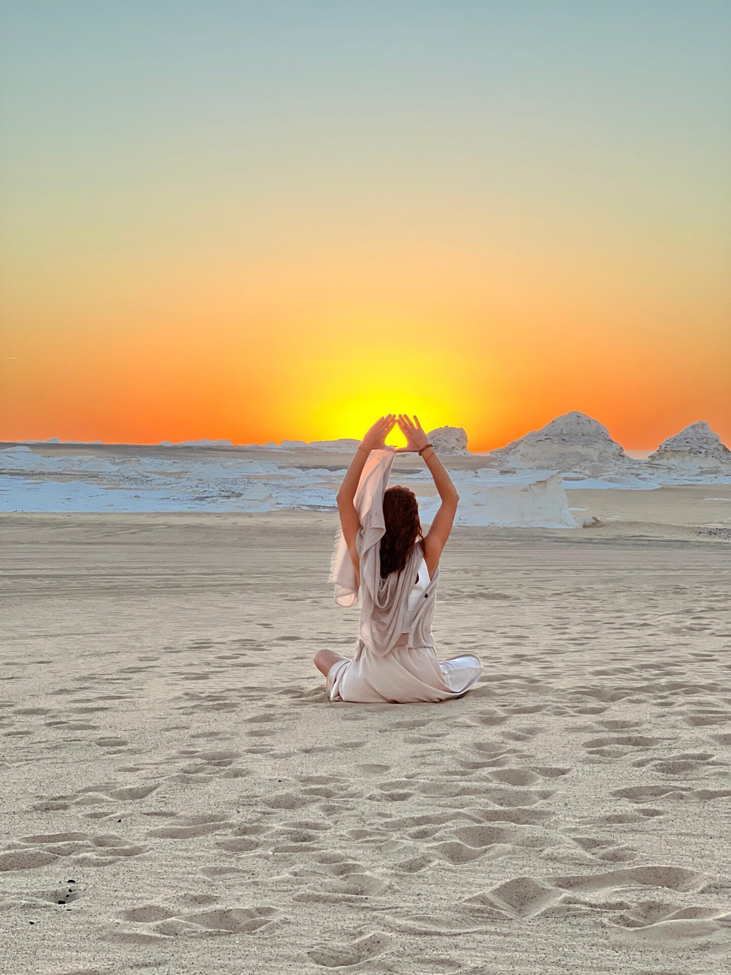 Má fyzická nepřítomnost není omezením, ale záměrným darem. Kdyby na pouti byl přítomen meditační či energetický průvodce, nevyhnutelně by strhával pozornost účastníků k sobě - k jeho výkladu, energii a interpretaci. Tato dynamika by Tě připravila o nejcennější aspekt iniciační cesty: přímé, nezprostředkované setkání s posvátnem a se sebou samou. Když stojíš sama před Orákulem nebo pod hvězdnou oblohou Bílé pouště, Tvá pozornost směřuje stoprocentně dovnitř, k Tvému vlastnímu prožitku, k Tvým vlastním významům. Právě v tomto prostoru ticha a samostatnosti se rodí skutečná transformace - nikoli skrze cizí výklad, ale skrze Tvé vlastní pochopení.